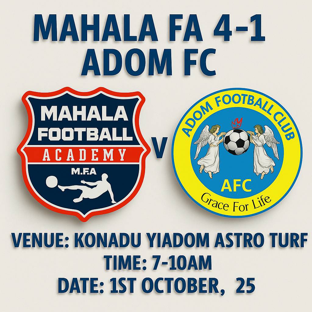 Mahala FA 4β1 Kumasi AIK FC | Preparatory Friendly Match Date: Friday, 3rd October 2025 Venue: Konadu Yiadom Astro Turf β Kumasi Competition: Preparatory Friendly Match Mahala Football Academy produced a thrilling performance as they secured a convincing 4β1 victory over Kumasi AIK FC in a preparatory friendly on Friday afternoon at the Konadu Yiadom […]